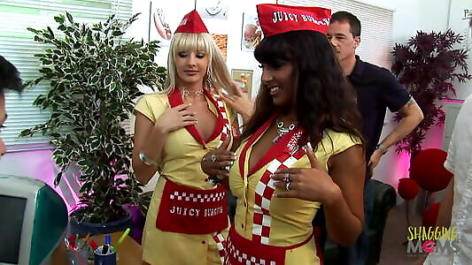 Supreme looking nymphs frolicking with multiple stiff pricks together
