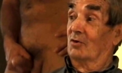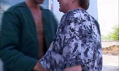 Elderly and busty German granny in stockings enjoys making a trouser snake cum