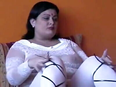 My mother-in-law in a beautiful red dress and black stockings helped me on her beautiful tummy!