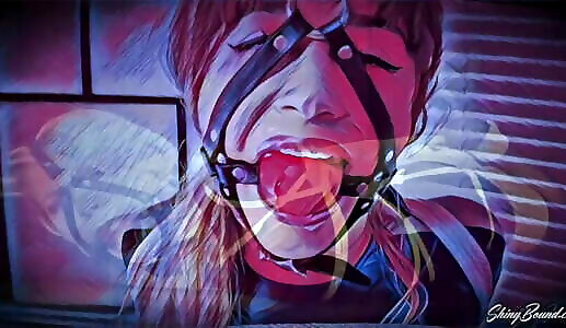 Bonded Blonde Adeline Murphy in Stockings and High Heels Masturbates and Fingers Herself. Butt Plug